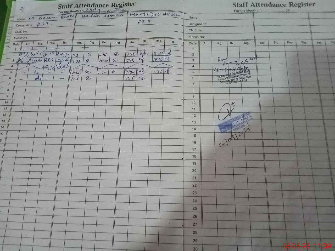 | Name: IS**** AN**** Designation: (School Headmaster's/Headmistress's) sst Phone/Cell Number: 03**** |