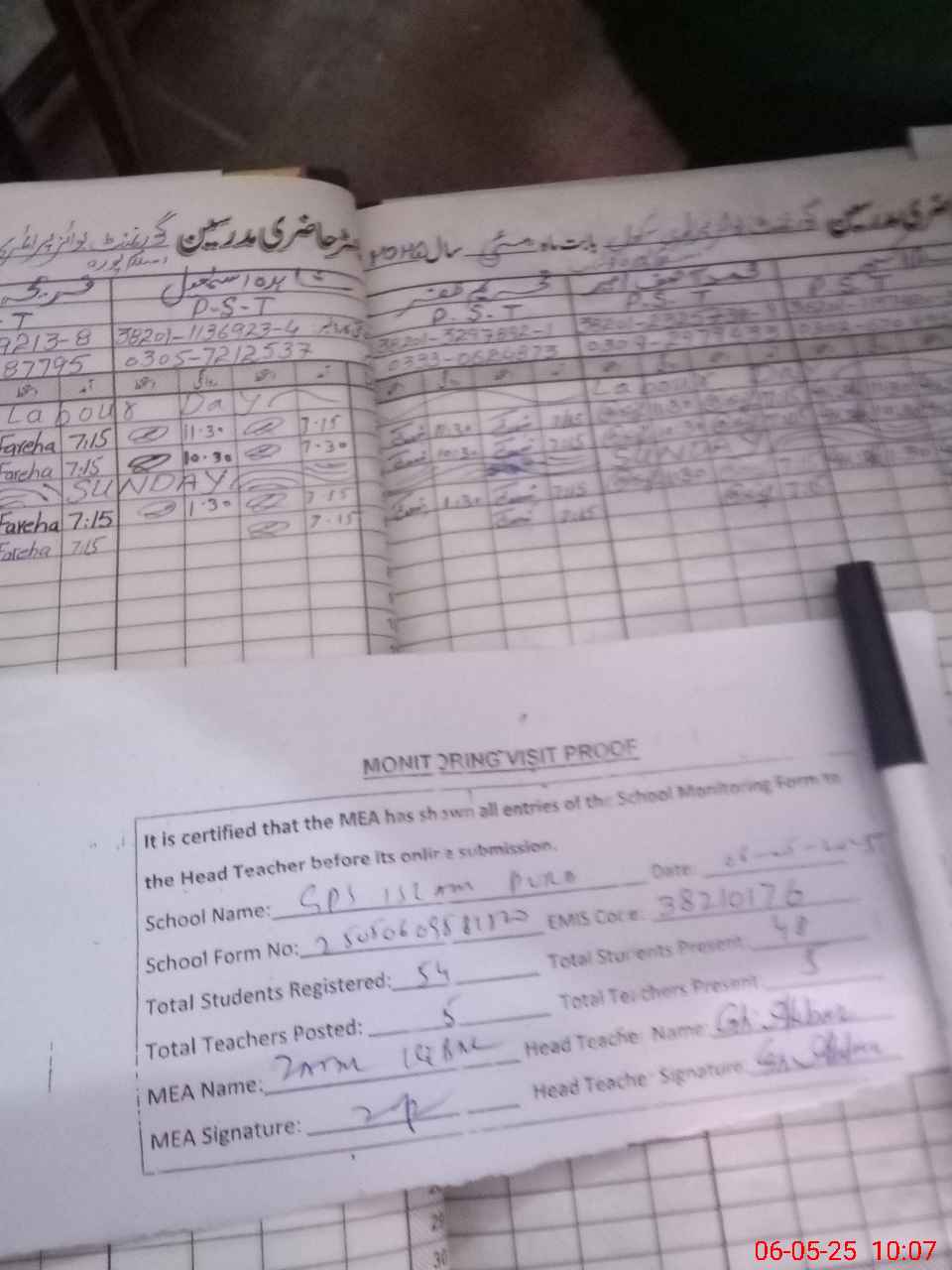 | Attendance Register | Head Teacher | MEA with School | Visit Proof |