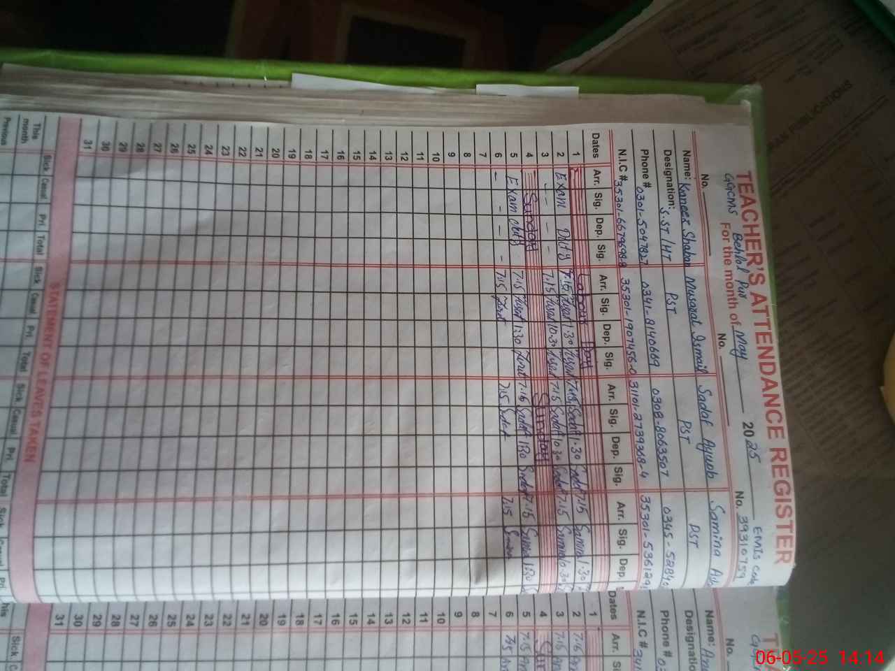 | 35**** | Ka**** Sh**** | Regular | 0 | 1 | 0 | 0 | 0 | 0 | 0 | 0 | 0 | Exam Duty | |