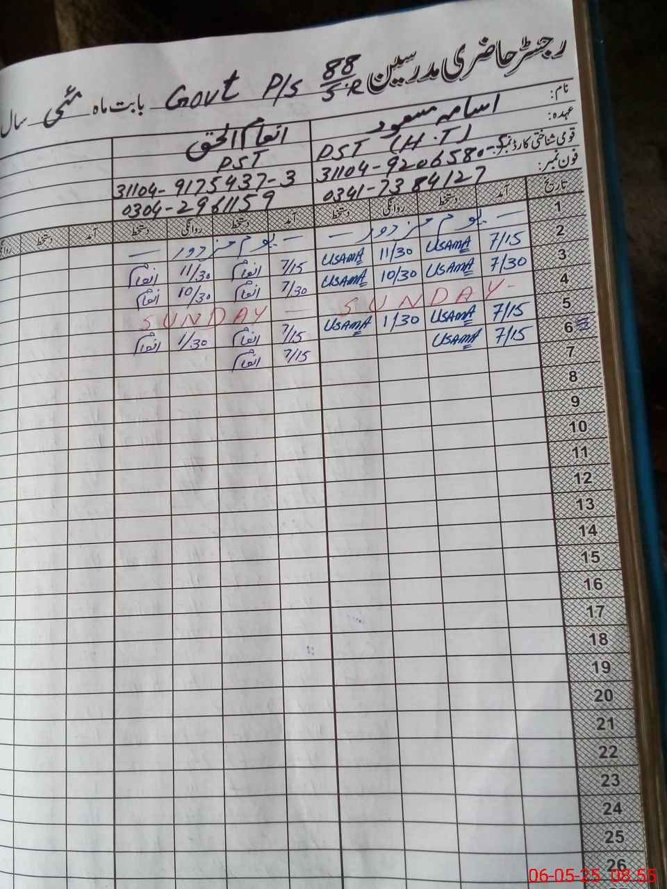 | Name: Us**** Ma**** Designation: (School Headmaster's/Headmistress's) PST Phone/Cell Number: 03**** |