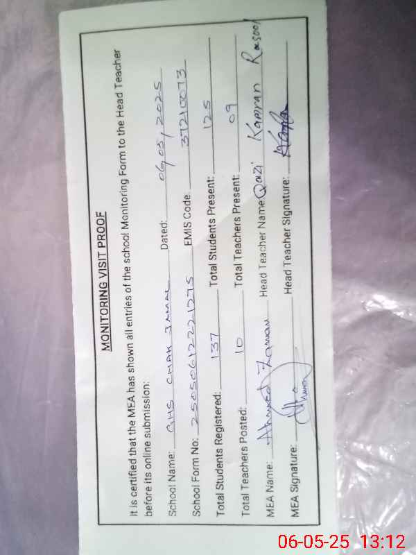 | EMIS Code: 37210073 | Name of School: GHS CHAK JAMAL | |||