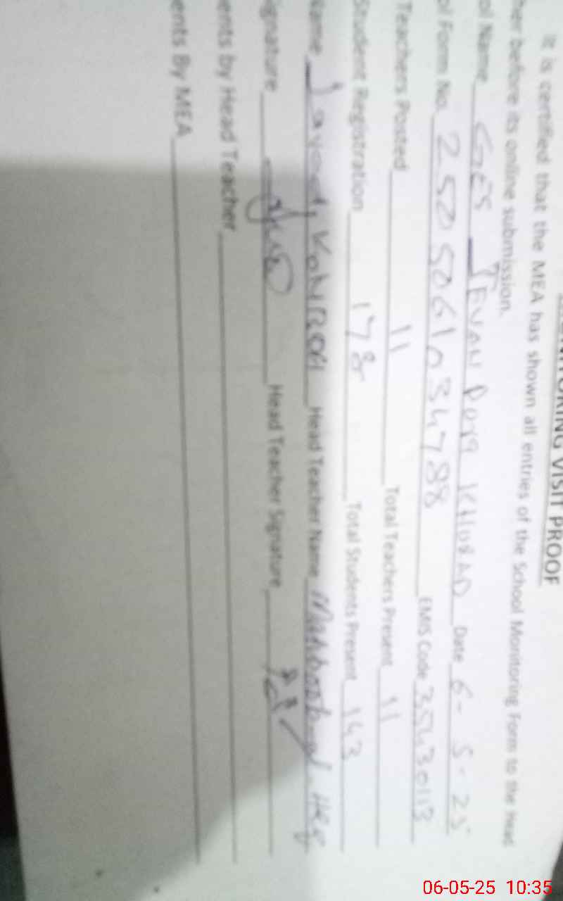 | Attendance Register | Head Teacher | MEA with School | Visit Proof |