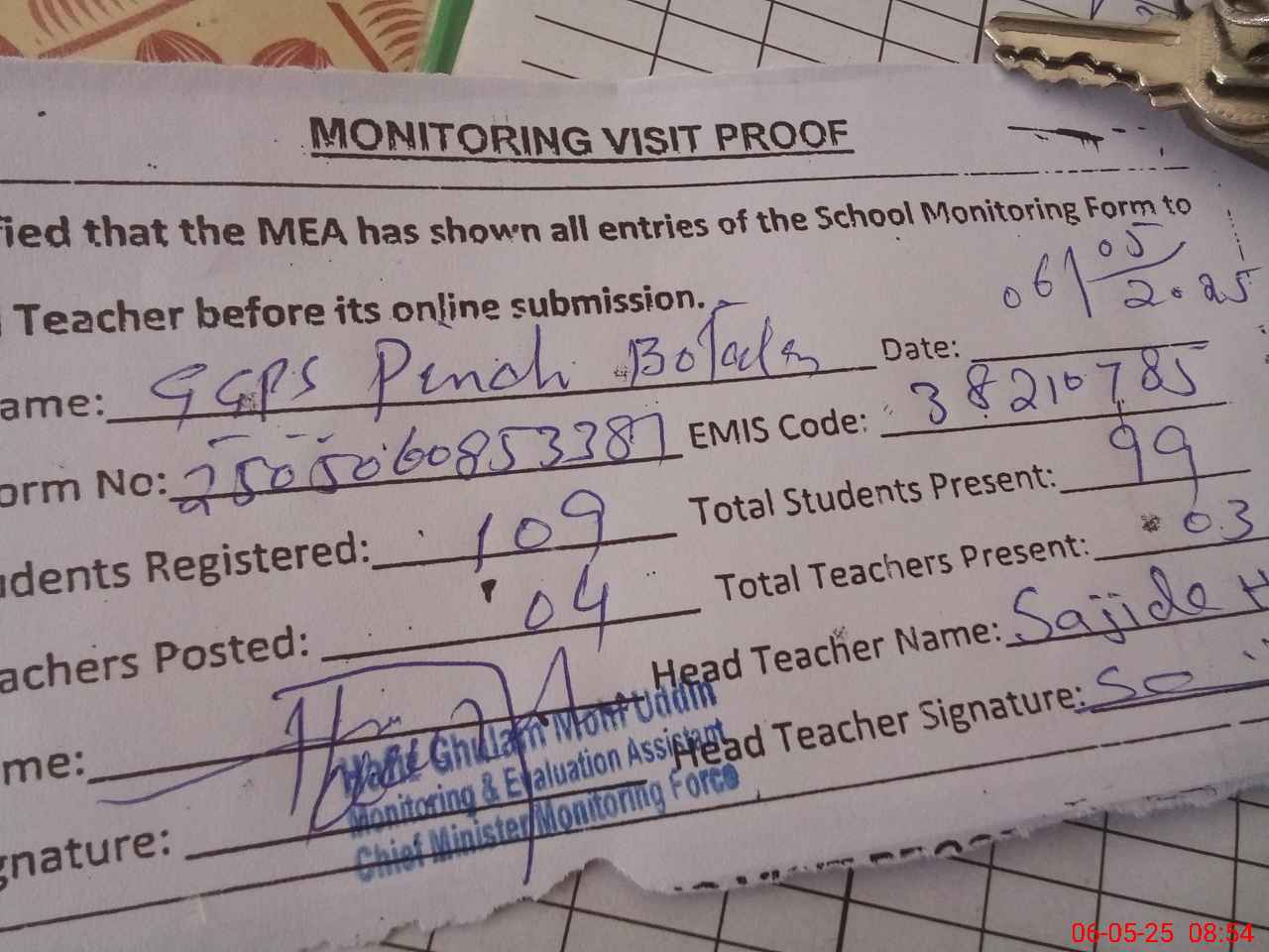 | EMIS Code: 38210785 | Name of School: GGPS PINDI BOTALA | |||