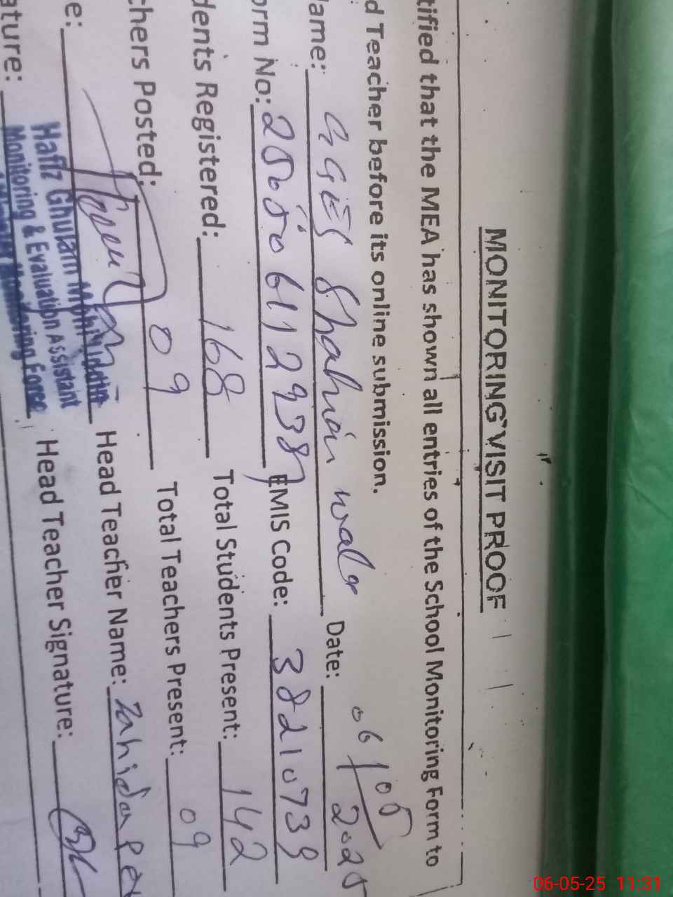 | EMIS Code: 38210789 | Name of School: GGES SHAHIAN WALA | |||