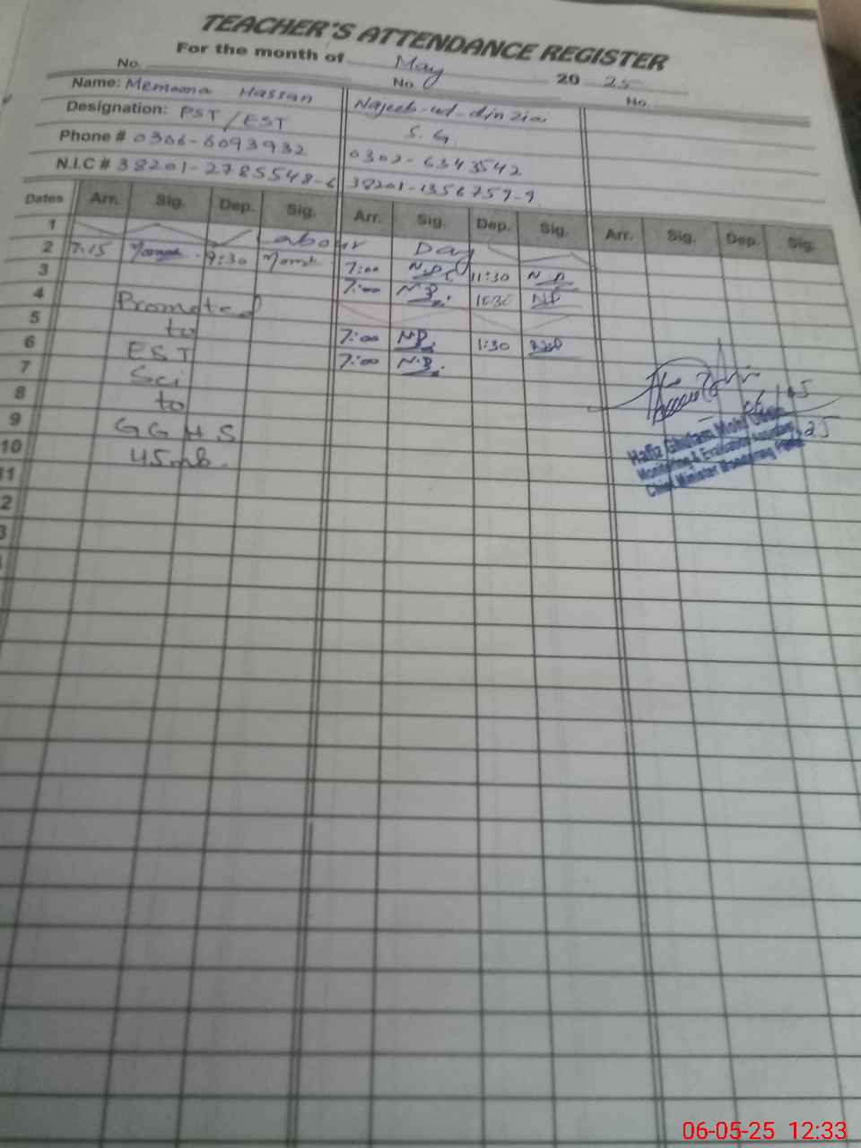 | Name: Nu**** Za**** Designation: (School Headmaster's/Headmistress's) PST Phone/Cell Number: 03**** |