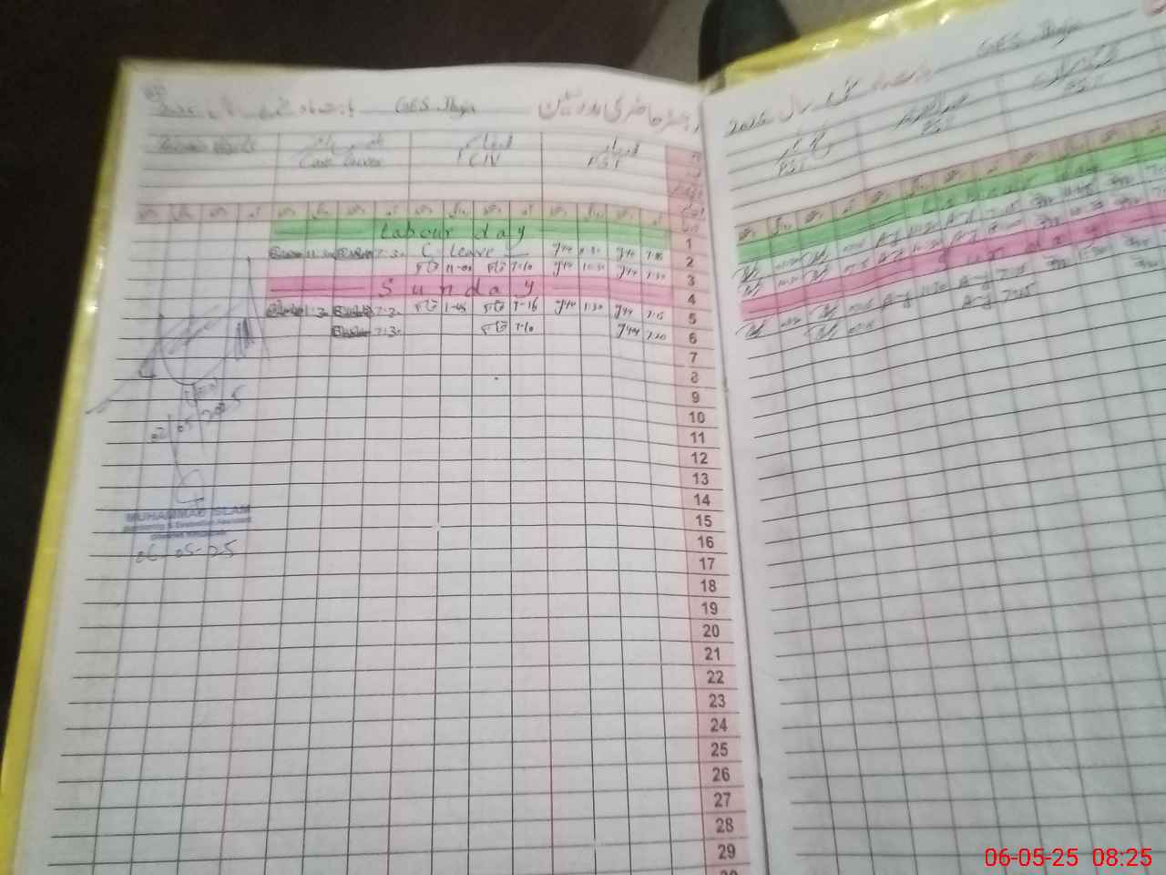 | CNIC | Full Name | Designation | R/C | Absence During Last Calender Month |