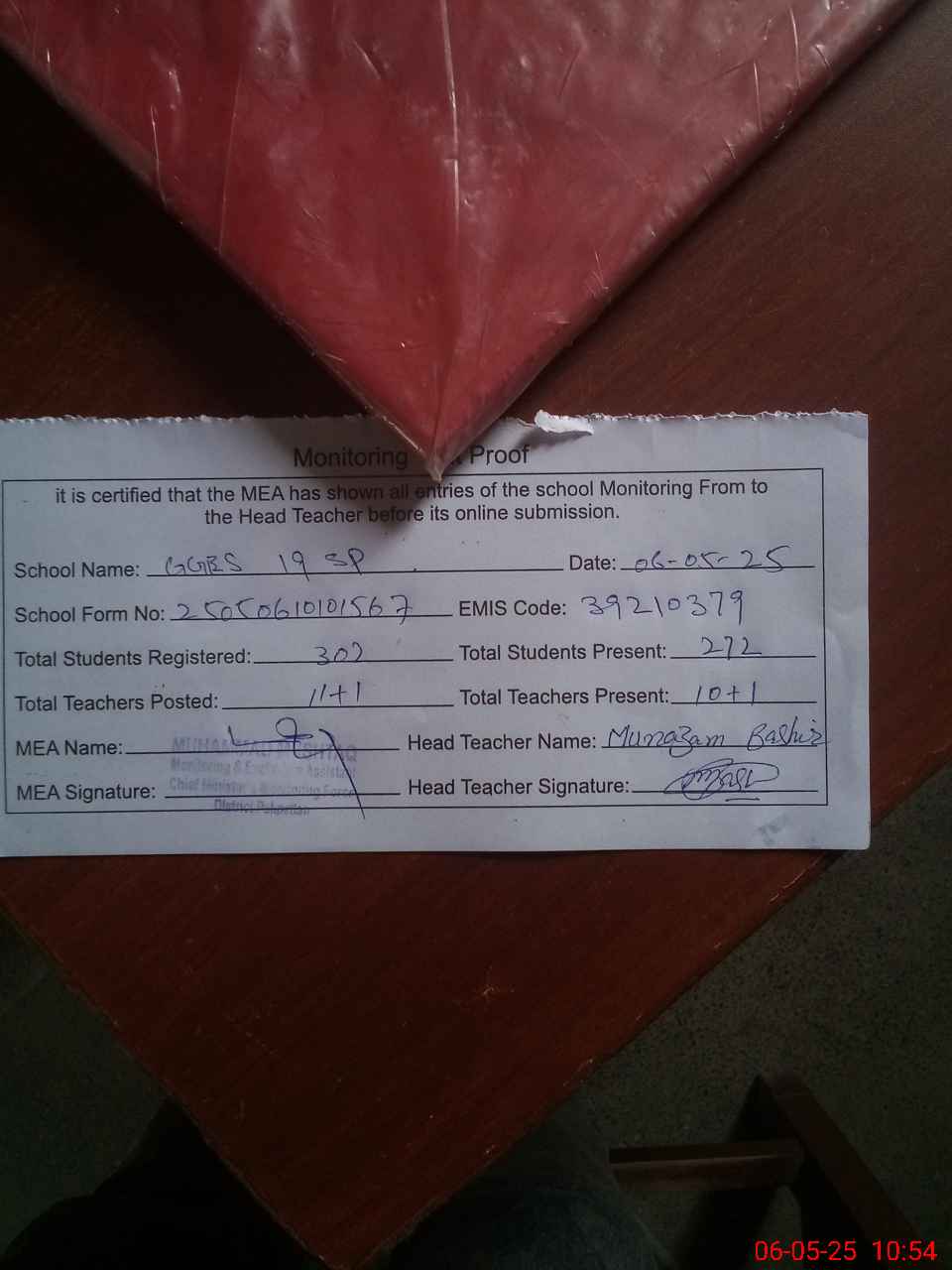 | EMIS Code: 39210379 | Name of School: GGES 19 SP | |||