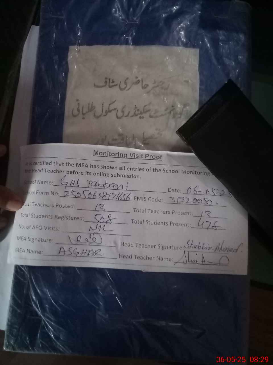 | Attendance Register | Head Teacher | MEA with School | Visit Proof |