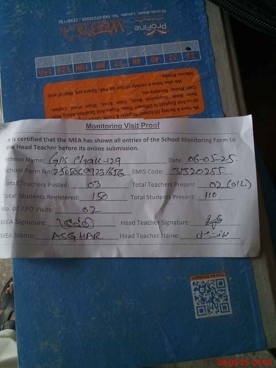 | EMIS Code: 31320255 | Name of School: GPS CHAK NO 129 NP | |||