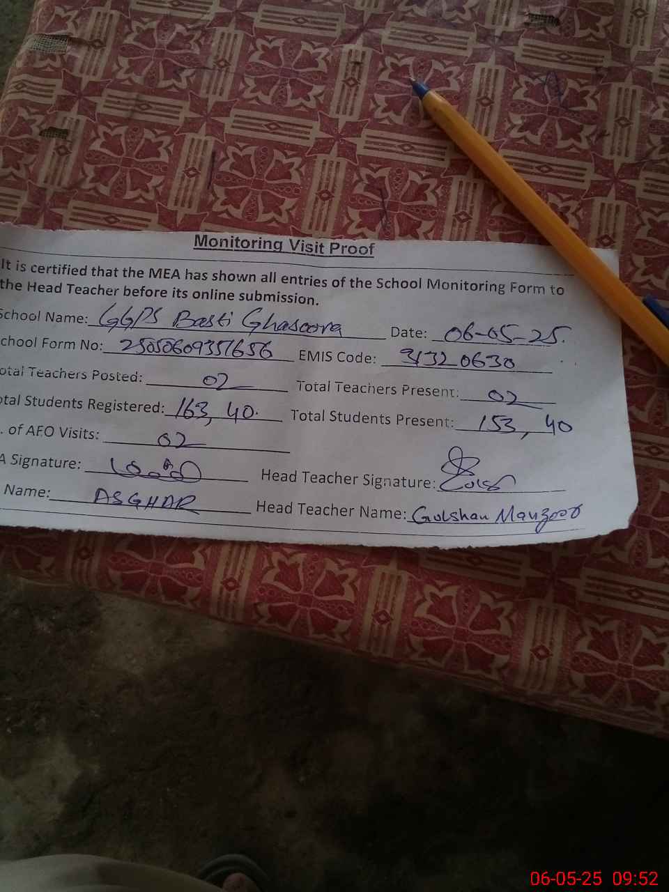 | EMIS Code: 31320630 | Name of School: GGPS BASTI GHASOORA | |||