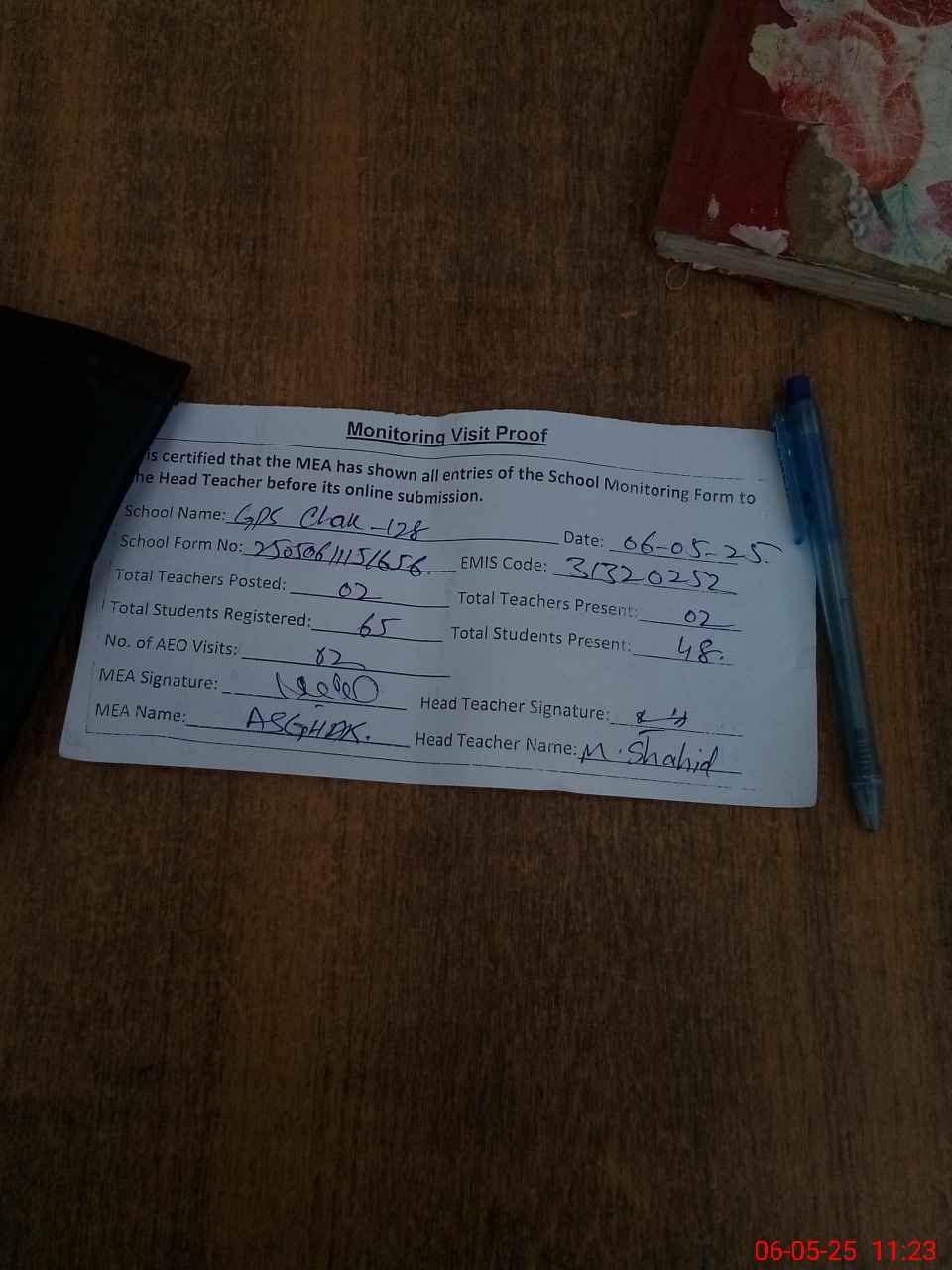 | EMIS Code: 31320252 | Name of School: GPS CHAK NO 128/NP | |||