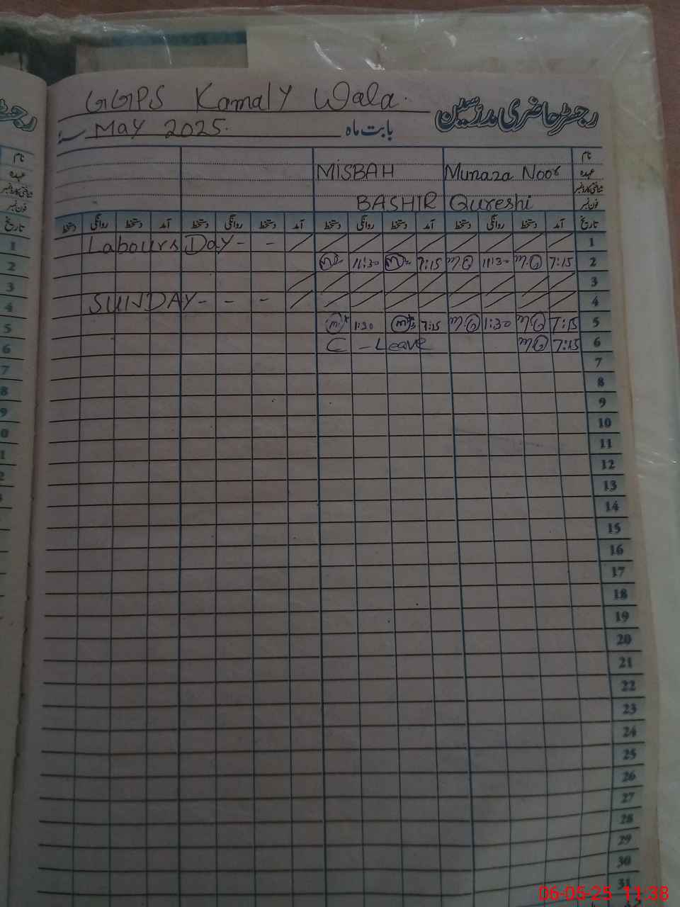 | CNIC | Full Name | Designation | R/C | Absence During Last Calender Month |