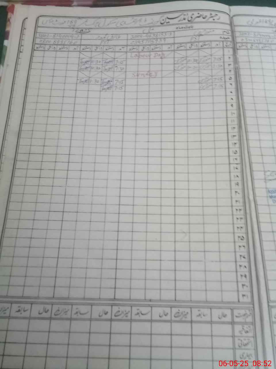 | CNIC | Full Name | Designation | R/C | Absence During Last Calender Month |