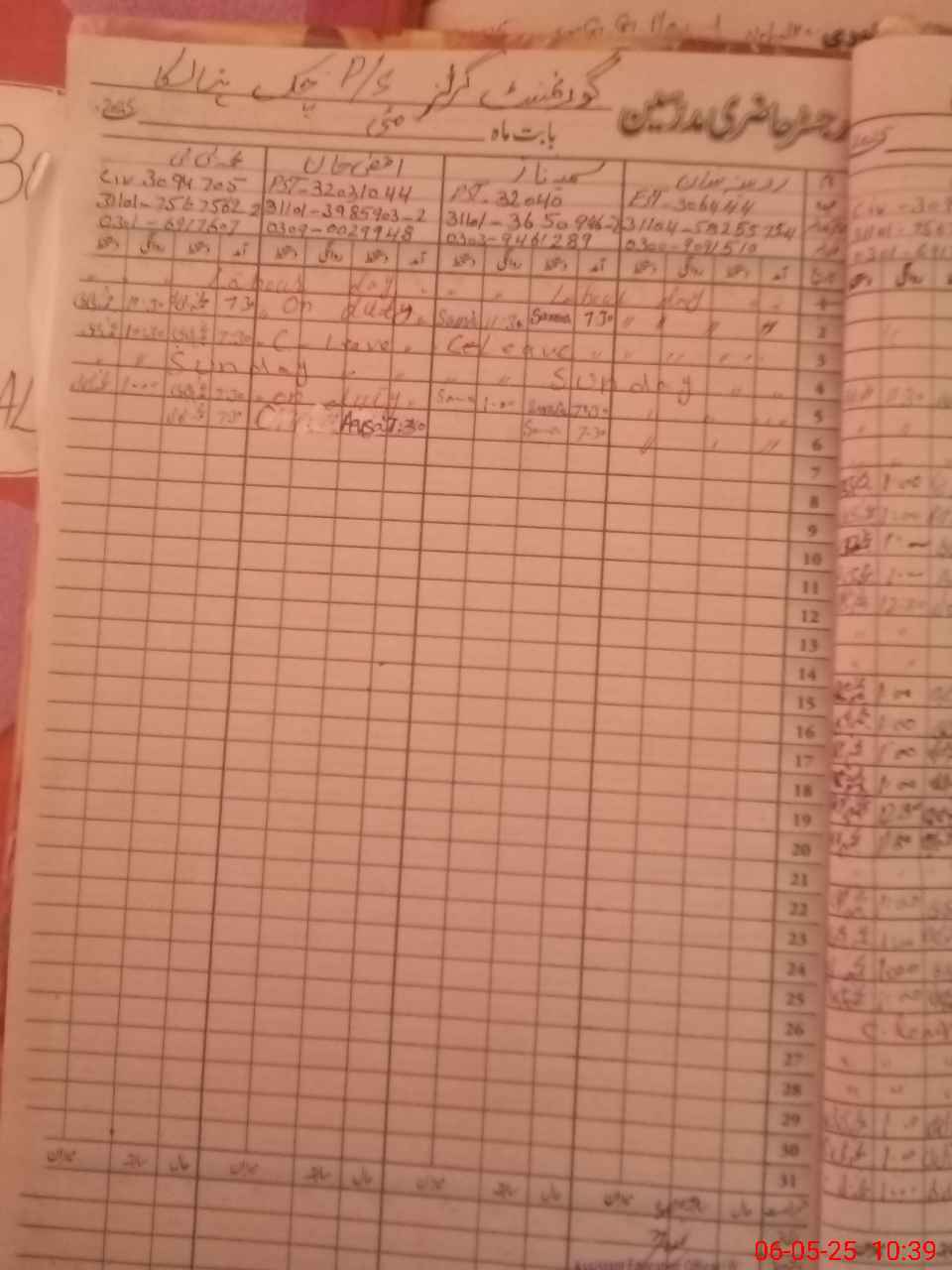 | CNIC | Full Name | Designation | R/C | Absence During Last Calender Month |