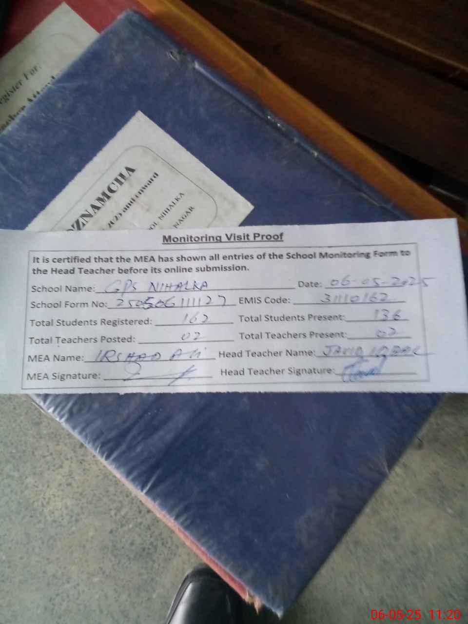 | EMIS Code: 31110162 | Name of School: GPS NIHALKA | |||