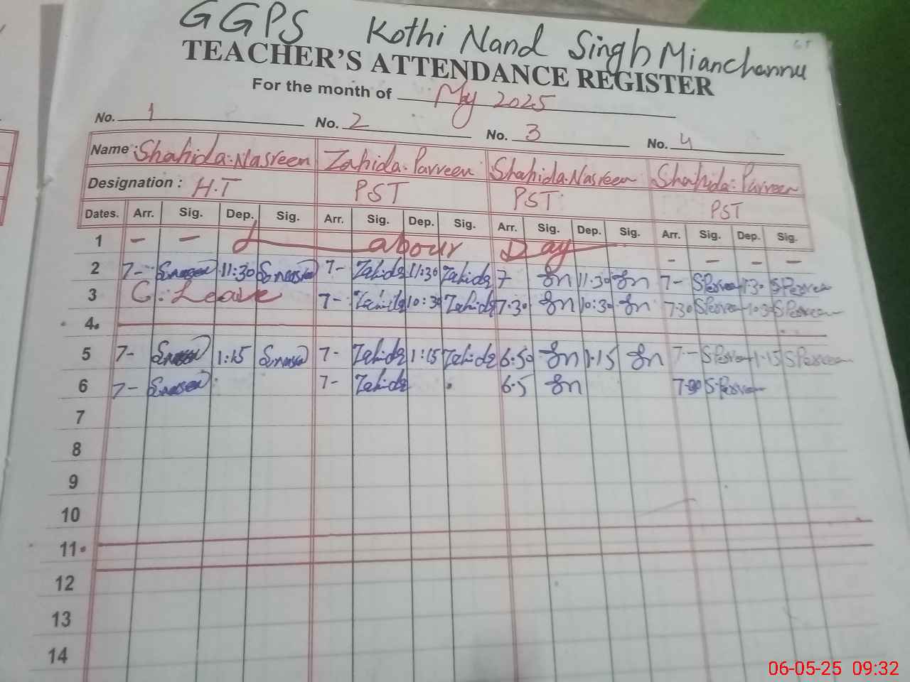 | Attendance Register | Head Teacher | MEA with School | Visit Proof |