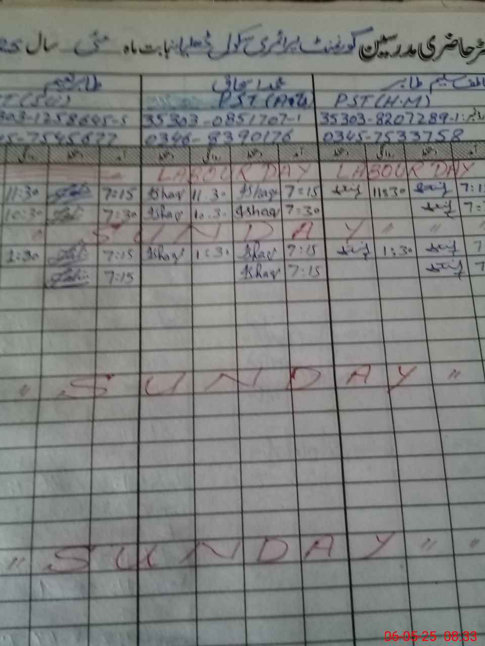 | Name: At**** Sa**** Ta**** Designation: (School Headmaster's/Headmistress's) PTC/JV Phone/Cell Number: 03**** |