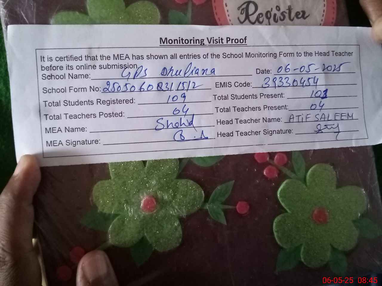 | EMIS Code: 39330454 | Name of School: GPS DHULYANA | |||