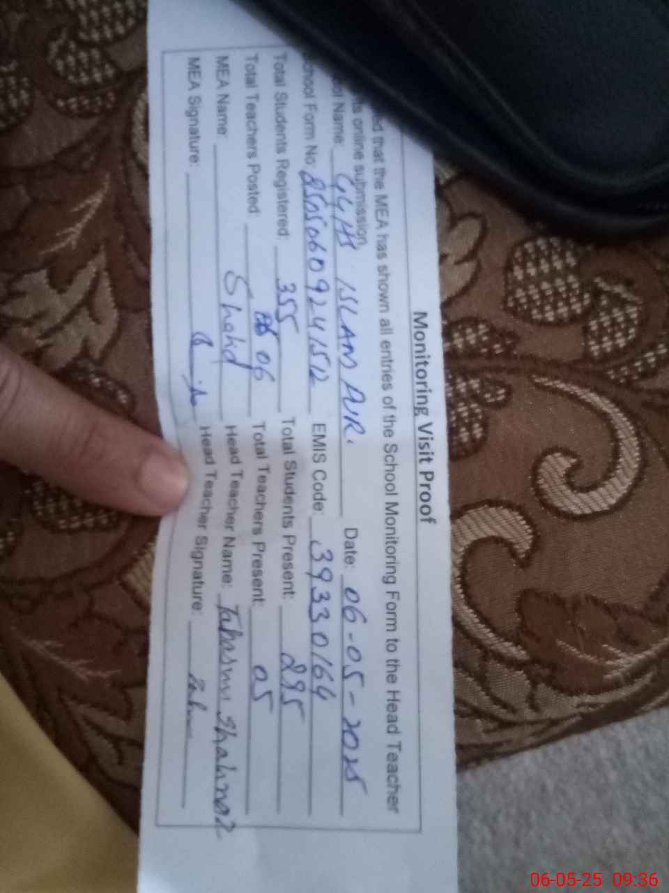 | EMIS Code: 39330164 | Name of School: GGHS ISLAM PUR | |||