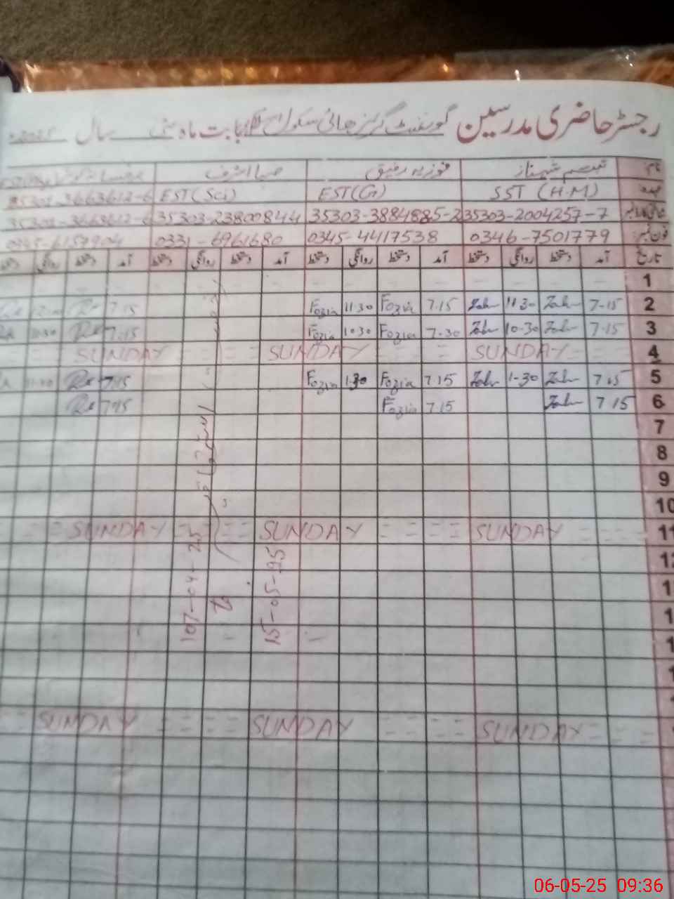 | 35**** | Uz**** Sh**** | EST | Regular | 0 | 0 | 0 | 0 | 0 | 0 | 0 | 0 | 0 | Exam Duty |