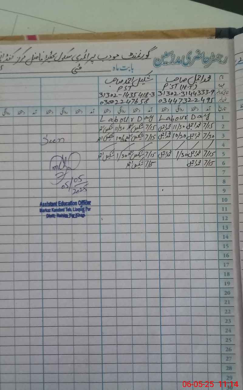 | Name: NO**** AH**** Designation: (School Headmaster's/Headmistress's) EST (OT) Phone/Cell Number: 03**** |