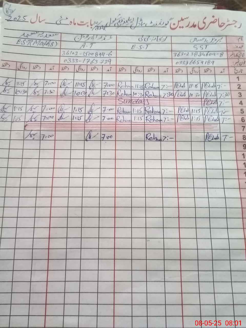 | Name: PE**** EH**** Designation: (School Headmaster's/Headmistress's) S.S.T.(general) Phone/Cell Number: 03**** |