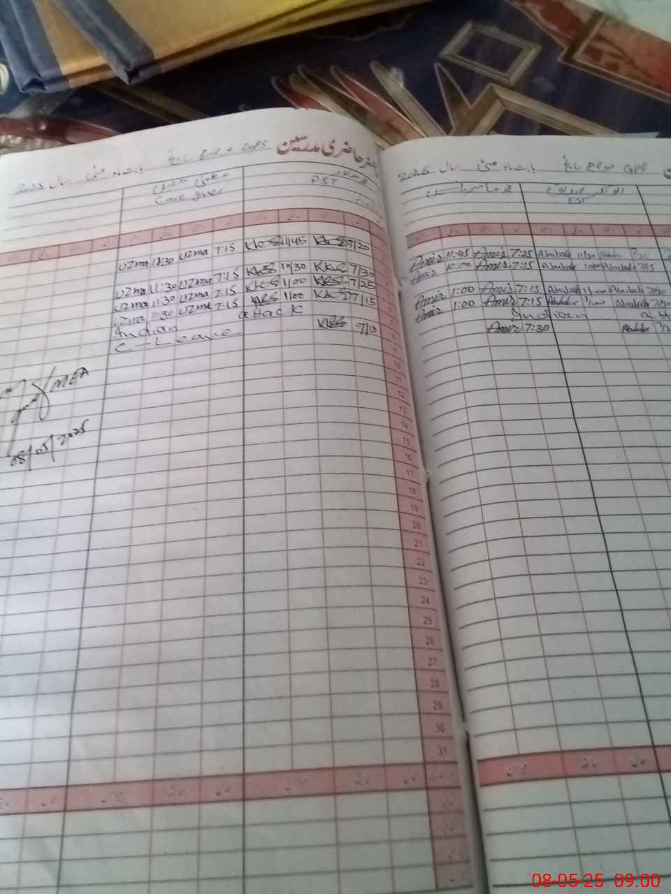 | CNIC | Full Name | Designation | R/C | Absence During Last Calender Month |