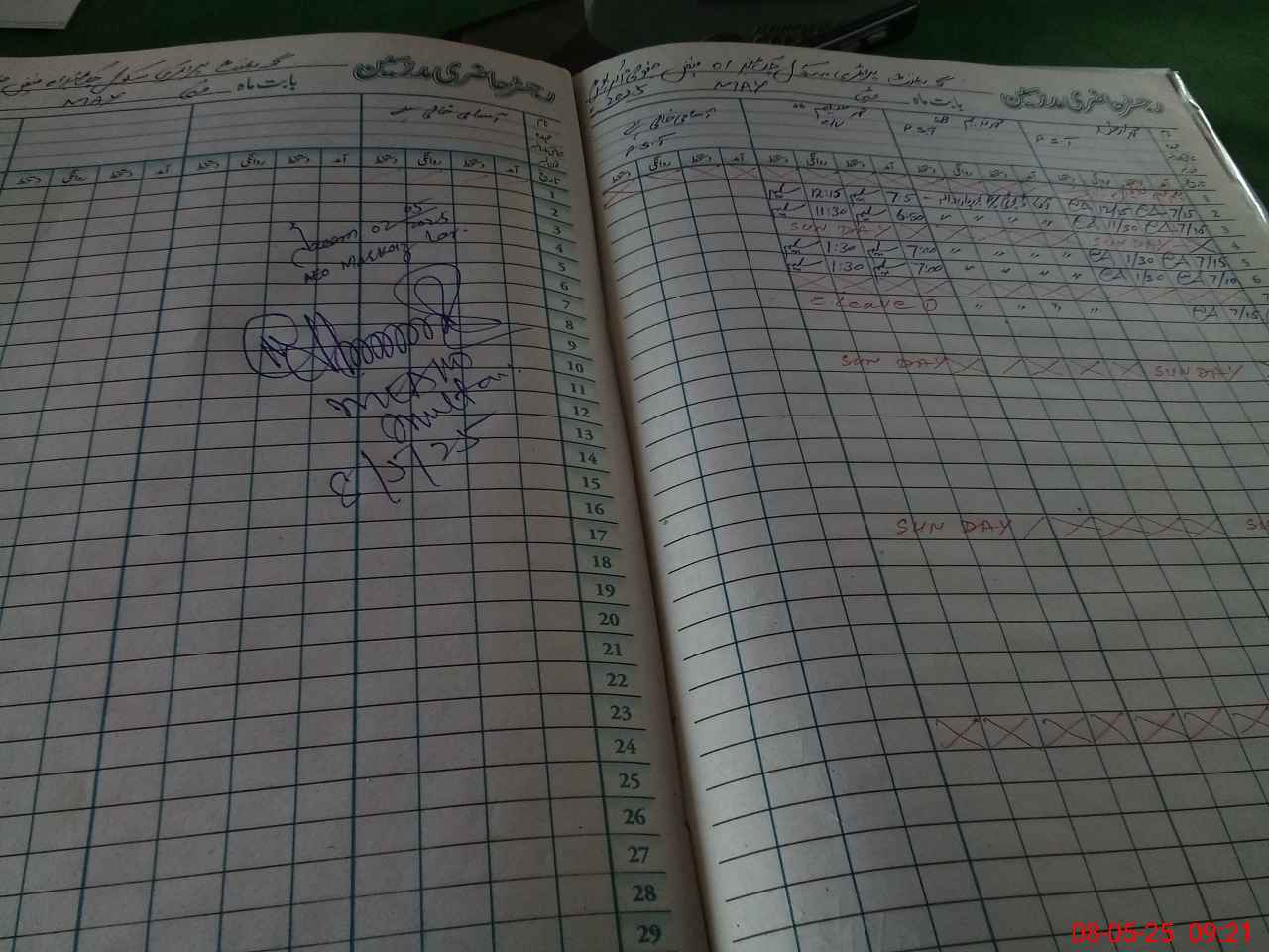 | CNIC | Full Name | Designation | R/C | Absence During Last Calender Month |