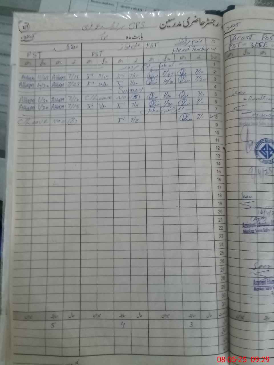 | CNIC | Full Name | Designation | R/C | Absence During Last Calender Month |