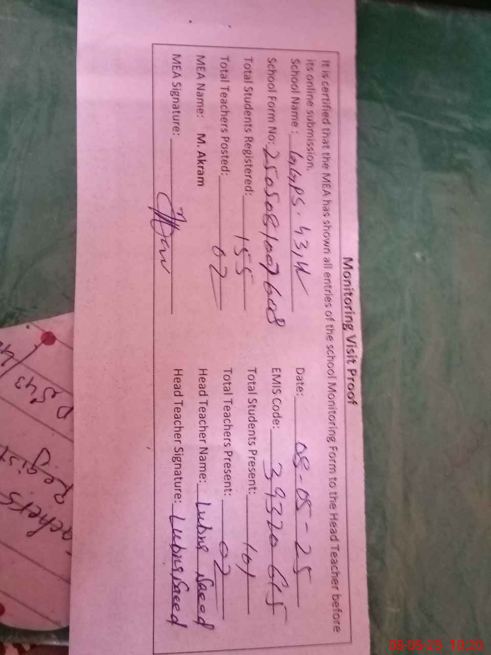 | Certified that this School was Inspected by the Undersigned MEA/DMO Today and the Information Stated Above is as Per Record. | |||||