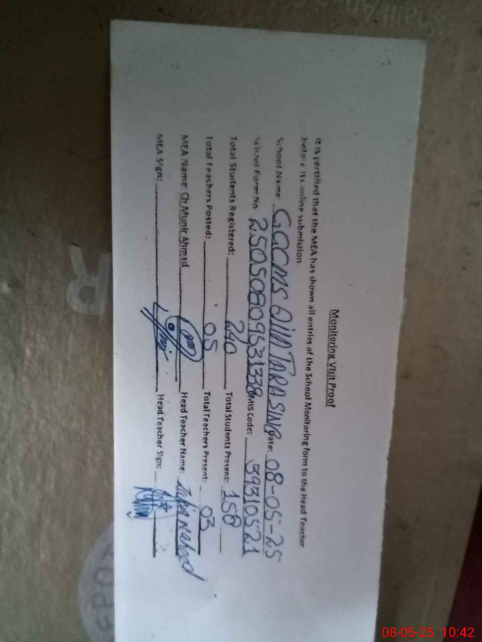 | EMIS Code: 39310521 | Name of School: GGCMS QILA TARA SINGH | |||