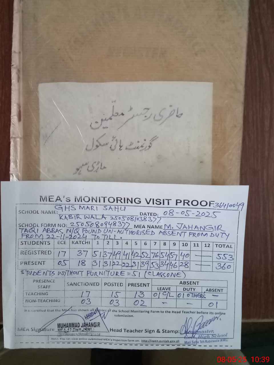 | EMIS Code: 36410049 | Name of School: GHS MARI SAHU, KABIRWALA | |||