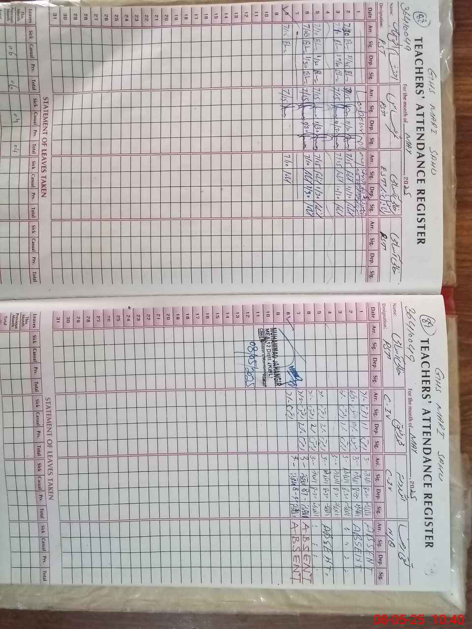 | Remarks (Use Separate Page if Required): EARLIER VISIT WAS START AT 0830 AM BUT DUE TO SOME ERROR IN NETWORK AND SYSTEM LOCATION IS NOT FETCHED AND APPLICATION UNINSTALLED AND AGAIN INSTALLED AND START VISIT AT 1023 AM ENTERED THE DATA TAQI ABBAS NQ FOUND UN AUTHORISED ABSENT FROM DUTY FROM 22 NOVEMBER 2024 TO TILL NSB GRANTS AND FTF RECORDS ARE NOT MAINTAINED BANK STATEMENTS OF NSB UPTO 01 NOVEMBER 2024 AND FTF UPTO 11 OCTOBER 2024 ARE AVAILABLE ONLY ONE HAND WASHING POINT IS WITH SOAP REMAINING ALL HAND WASHING POINTS ARE WITHOUT SOAP WASH CLUB RECORDS ARE NOT AVAILABLE FORMS D4 FOR DISTRIBUTION OF BOOKS ARE NOT AVAILABLE RANDOM CLASS TEN IS NOW PASSED OUT FROM THIS SCHOOL | |||||
