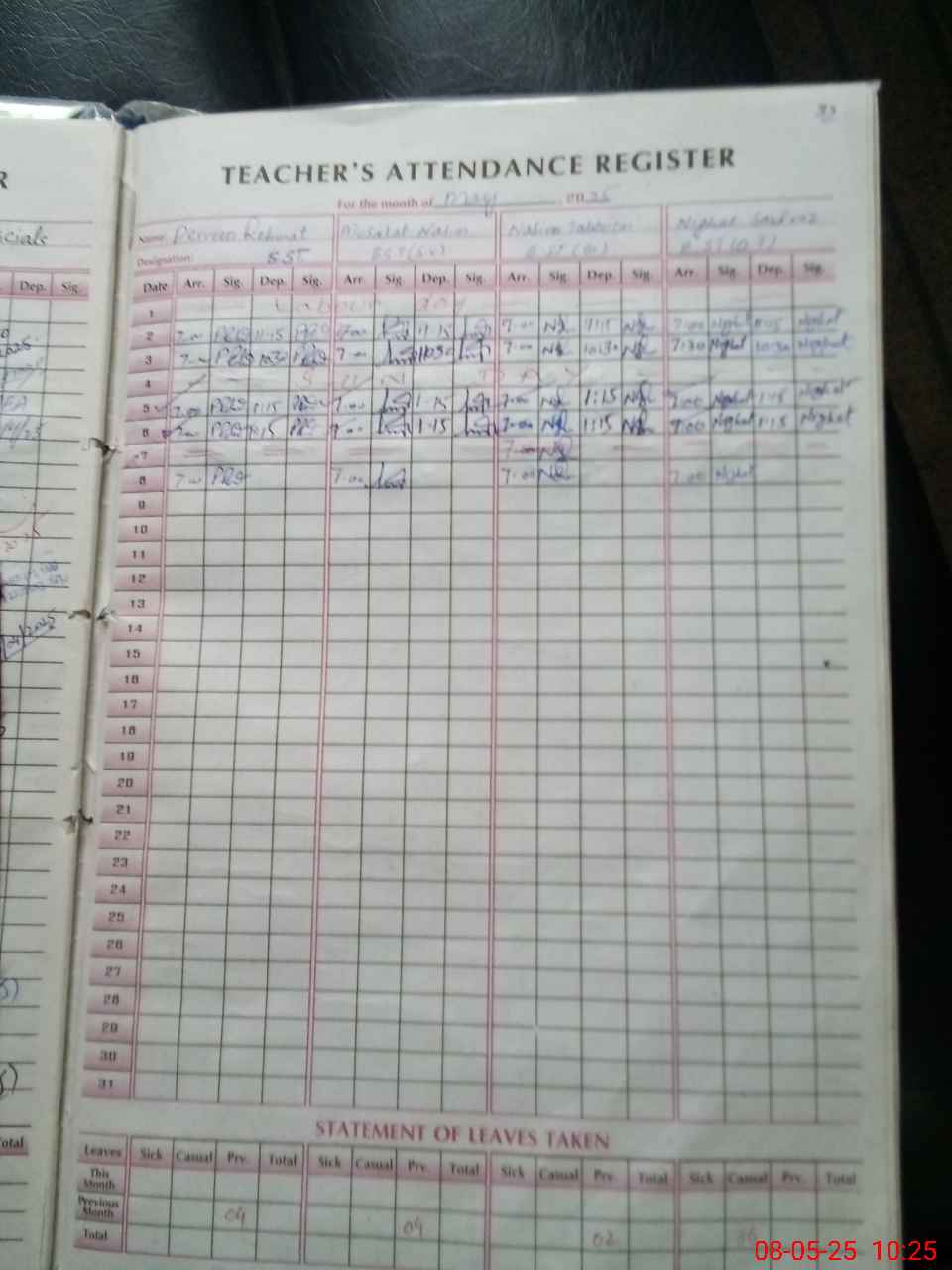 | Leave | Duty | Absent | Maternity | Medical | Ex- Pak |