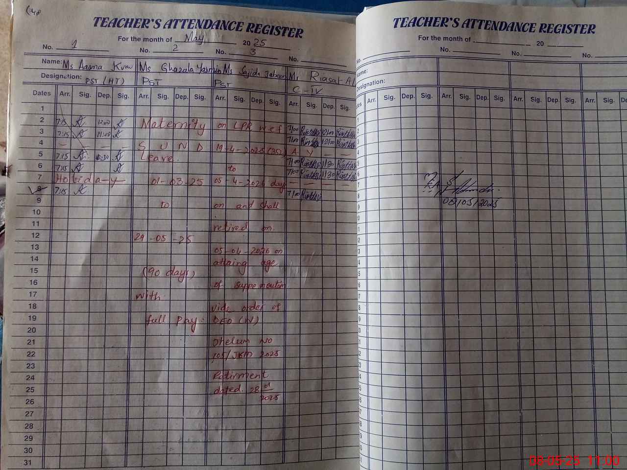 | 37**** | Gh**** Ya**** | PST | Regular | 30 | 0 | 0 | 30 | 0 | 0 | 0 | 0 | 0 | Maternity |