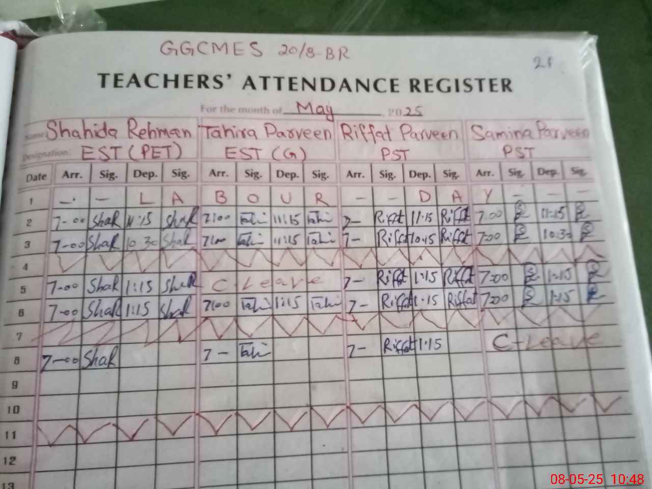 | CNIC | Full Name | Designation | R/C | Absence During Last Calender Month |