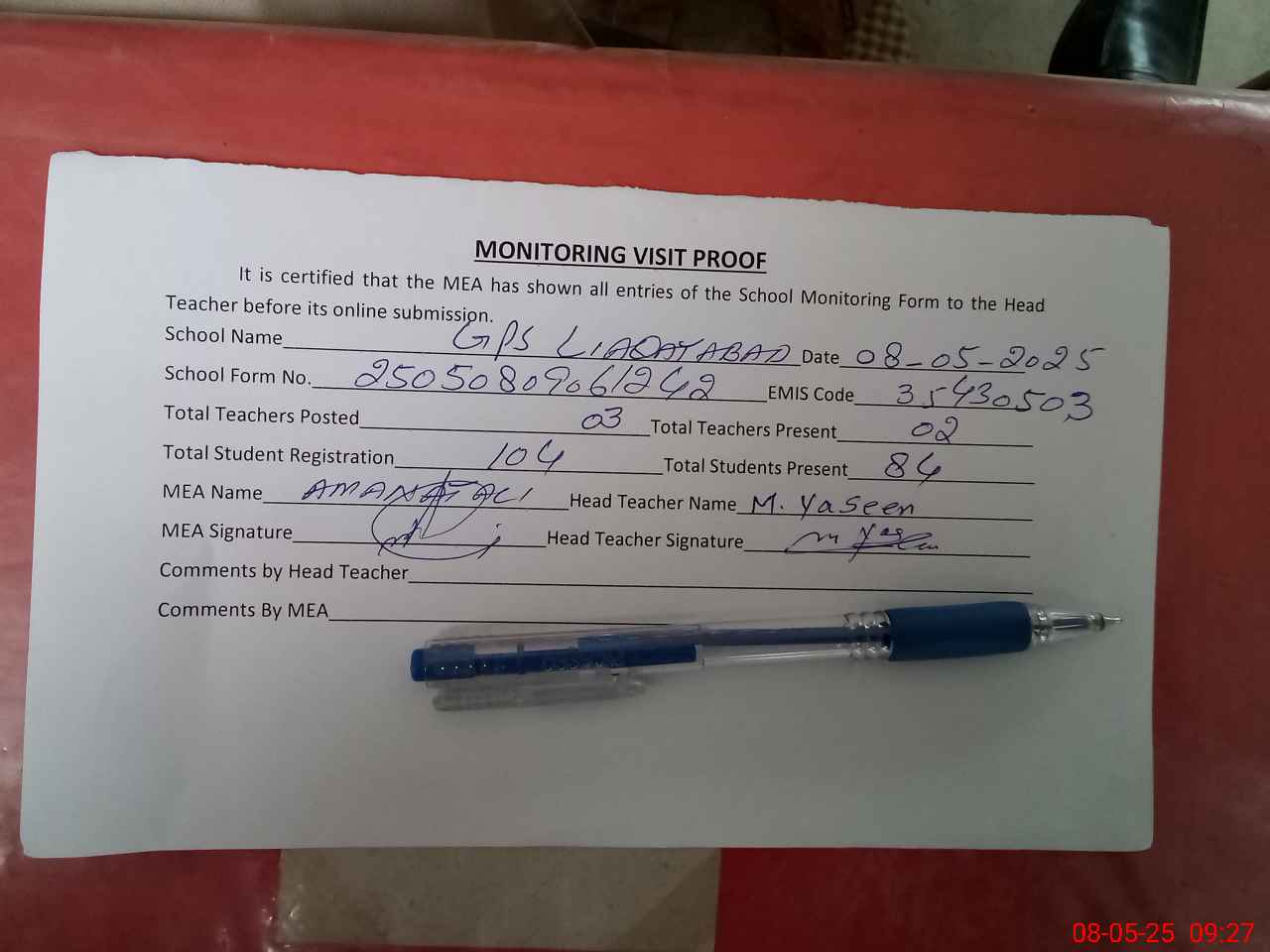 | EMIS Code: 35430503 | Name of School: GPS LIAQAT ABAD | |||