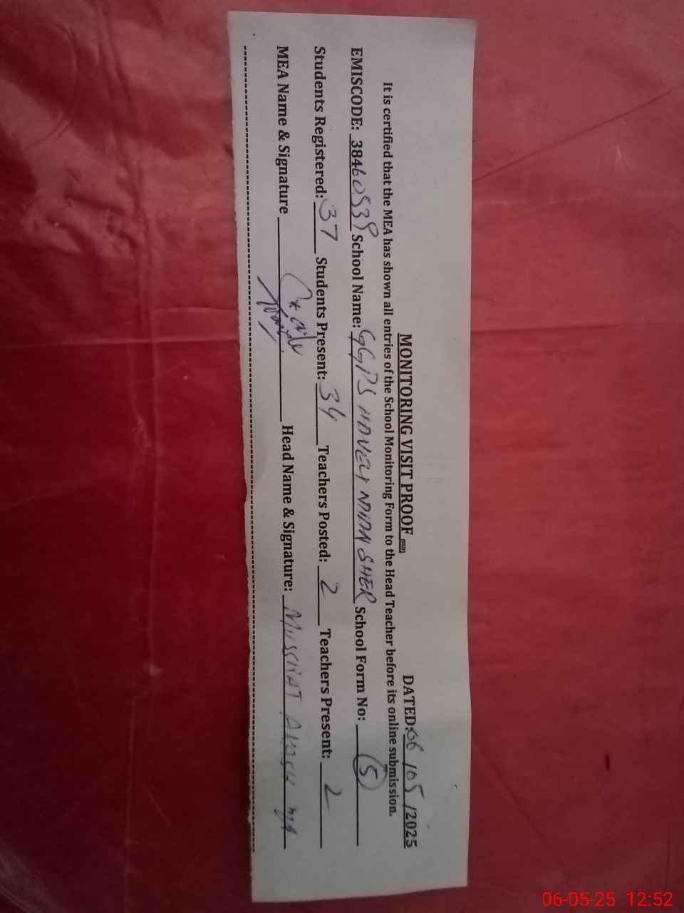 | EMIS Code: 38460539 | Name of School: GGPS HAVELI MIAN SHER ALI | |||