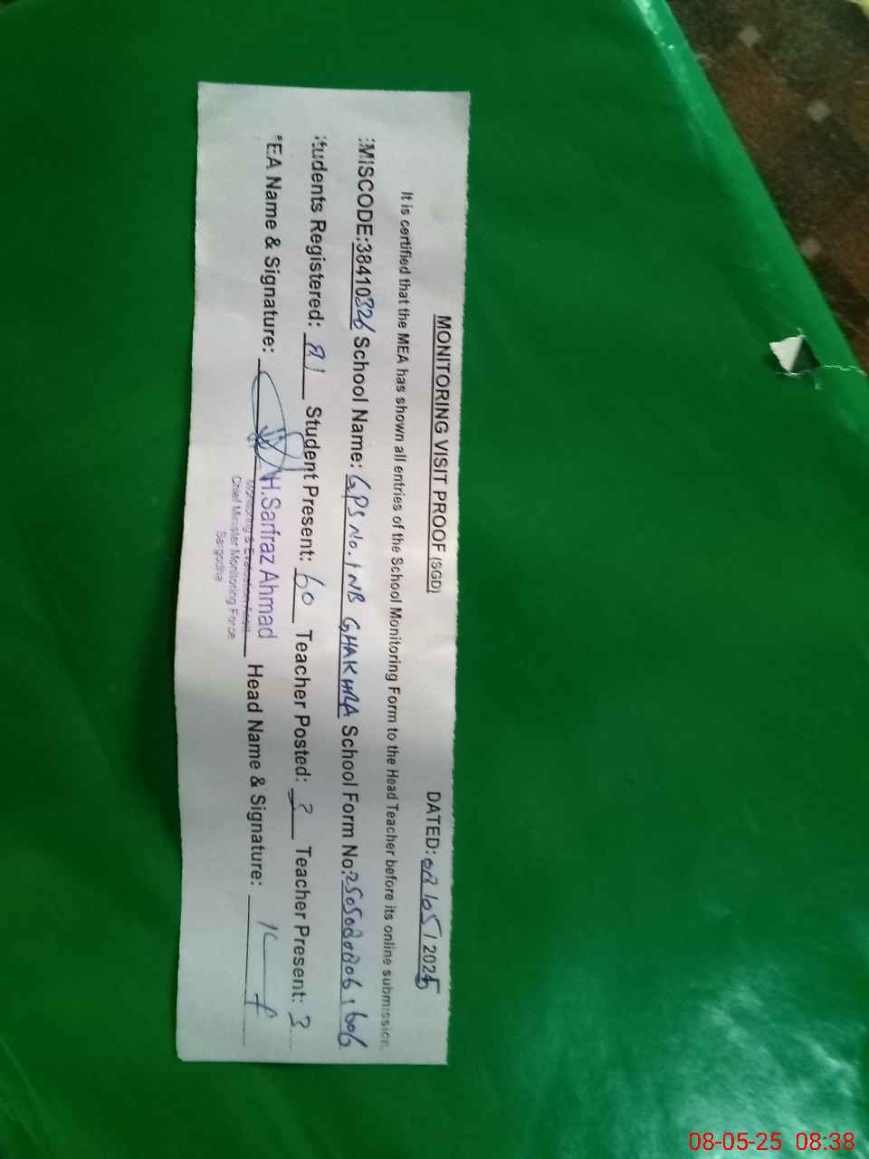 | EMIS Code: 38410326 | Name of School: GPS CHAK NO.1 NB GAKHRA | |||
