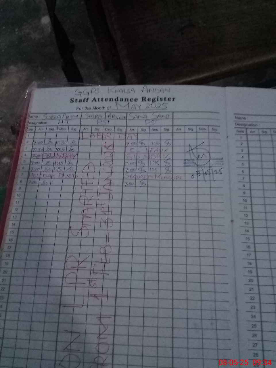 | Monitoring Date: 08-05-2025 | Start Time: 08-05-2025 09:13 AM | End Time: 08-05-2025 09:34 AM | Name of MEA: Na**** Ah**** | |
