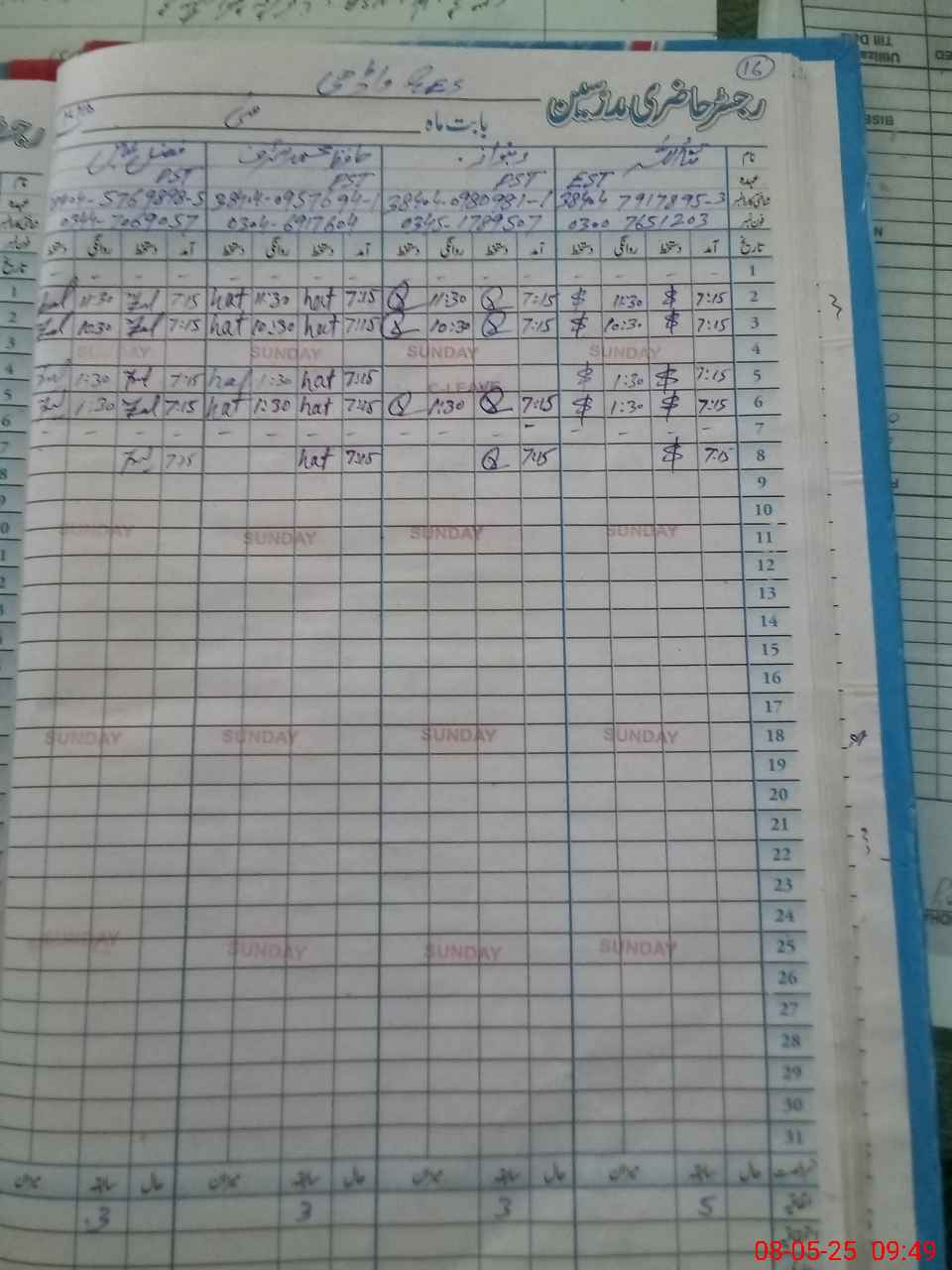 | CNIC | Full Name | Designation | R/C | Absence During Last Calender Month |