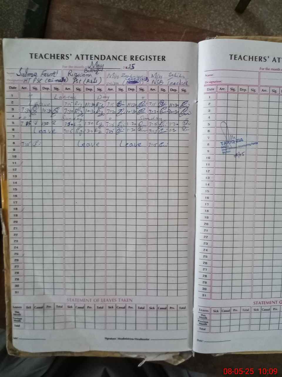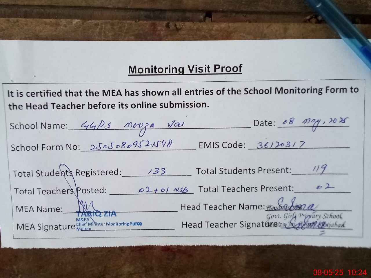 | Attendance Register | Head Teacher | MEA with School | Visit Proof |