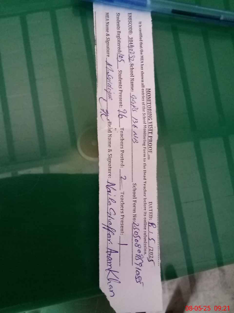 | Certified that this School was Inspected by the Undersigned MEA/DMO Today and the Information Stated Above is as Per Record. | |||||