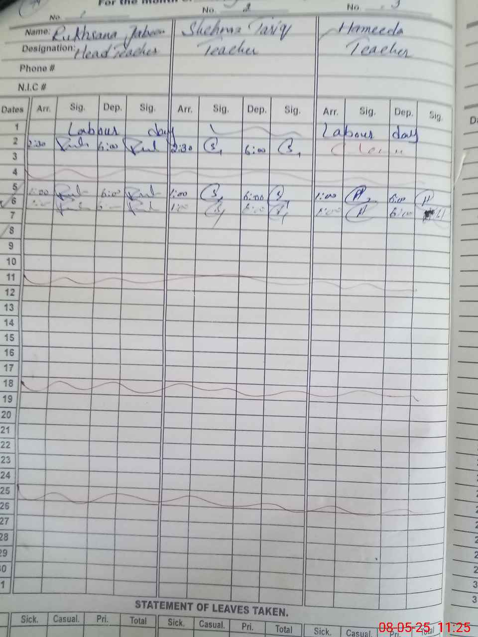 | 38**** | Sa**** Sa**** | PST | Regular | 0 | 0 | 0 | 0 | 0 | 0 | 0 | 0 | 0 | Exam Duty |