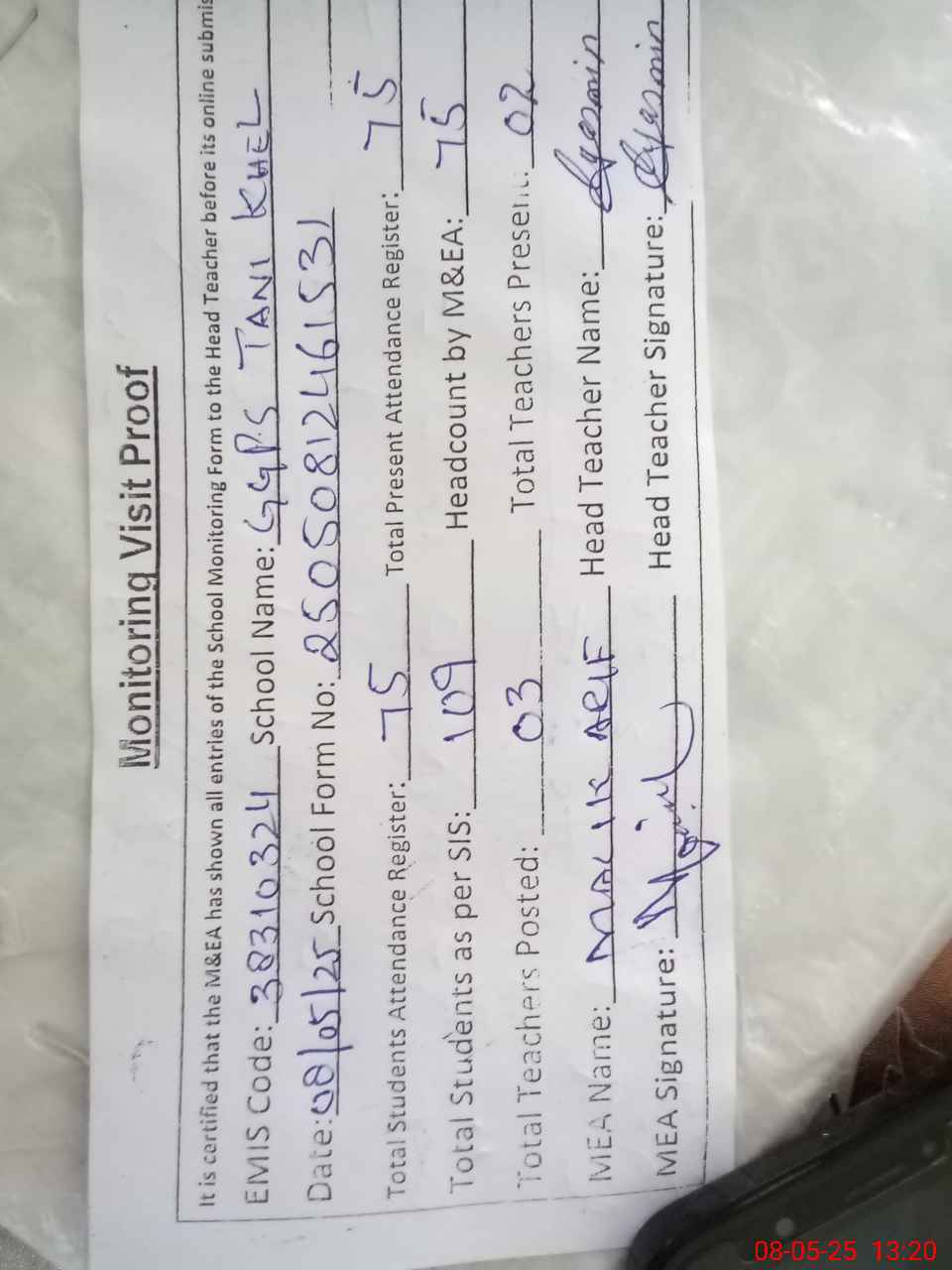 | EMIS Code: 38310324 | Name of School: GGPS TANI KHEL | |||