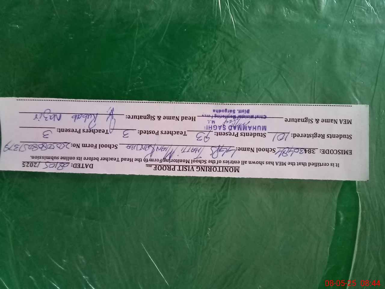 | Certified that this School was Inspected by the Undersigned MEA/DMO Today and the Information Stated Above is as Per Record. | |||||