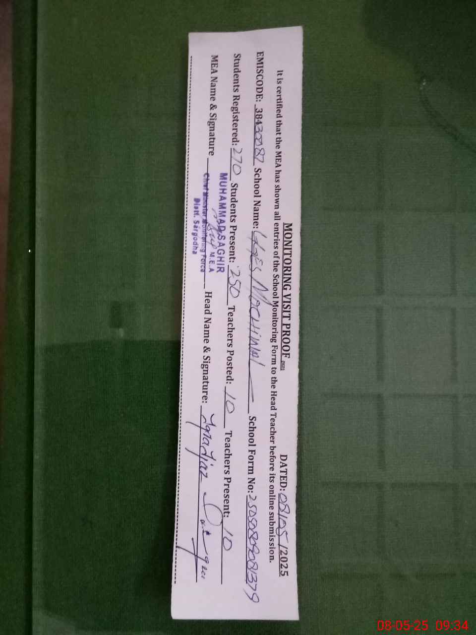 | EMIS Code: 38430087 | Name of School: GGES MOCHI WAL | |||