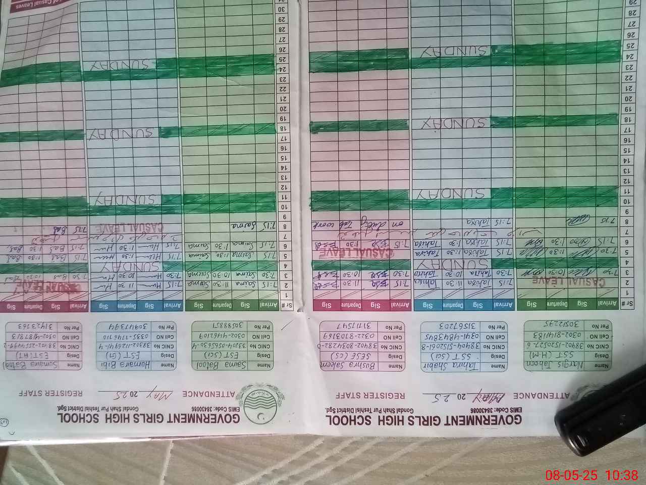 | 38**** | Ra**** Gh**** | SESE | Contract | 0 | 0 | 0 | 0 | 0 | 0 | 0 | 0 | 0 | Exam Duty |
