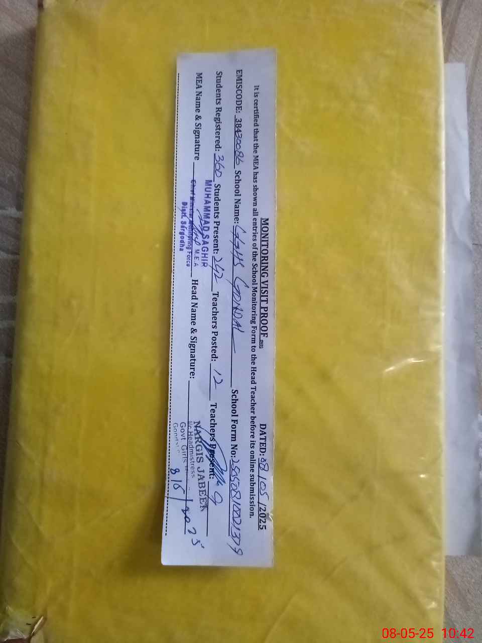 | Attendance Register | Head Teacher | MEA with School | Visit Proof |