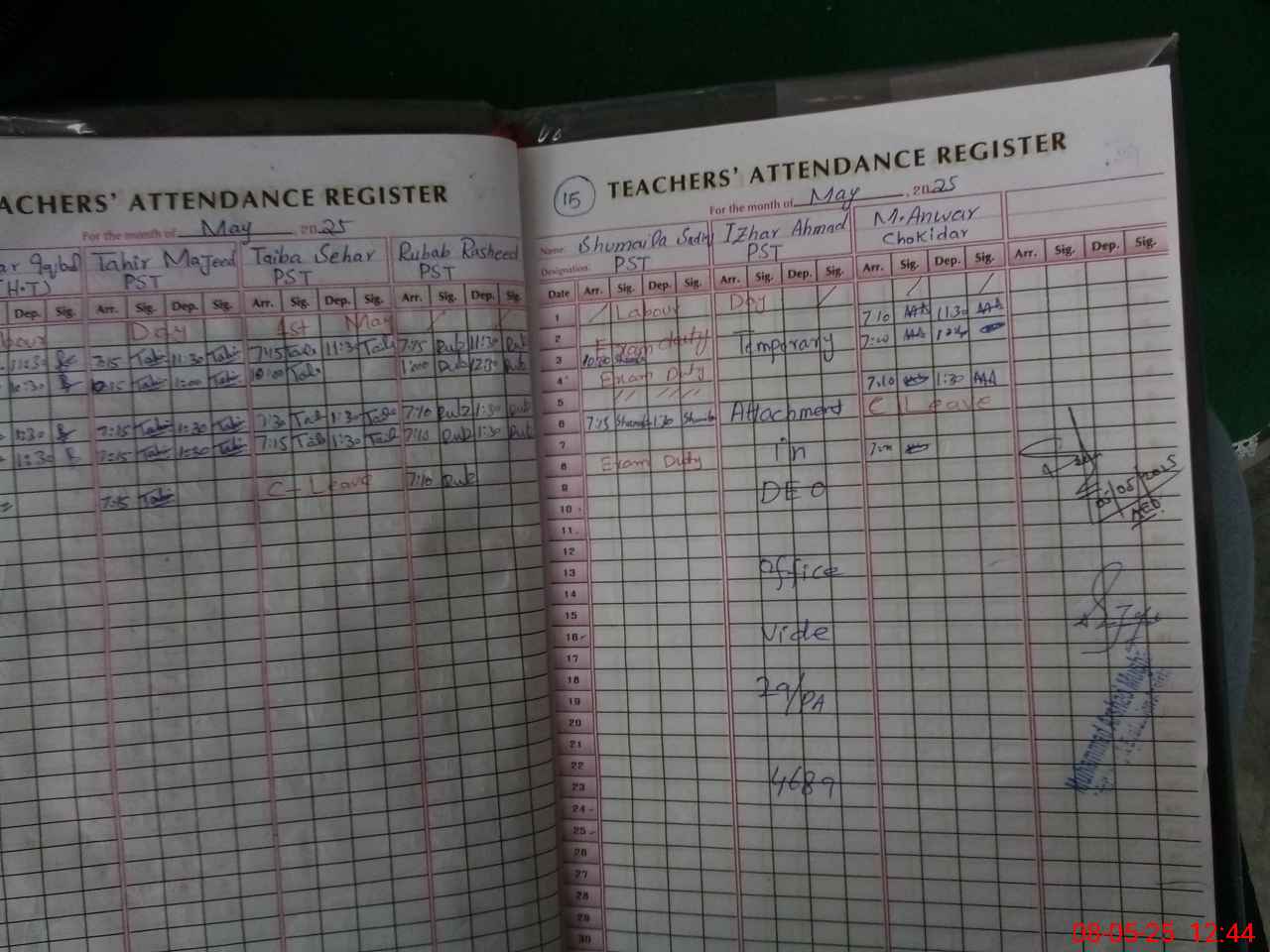 | 35**** | Sh**** Sa**** | PST | Regular | 0 | 0 | 0 | 0 | 0 | 0 | 0 | 0 | 0 | Exam Duty |